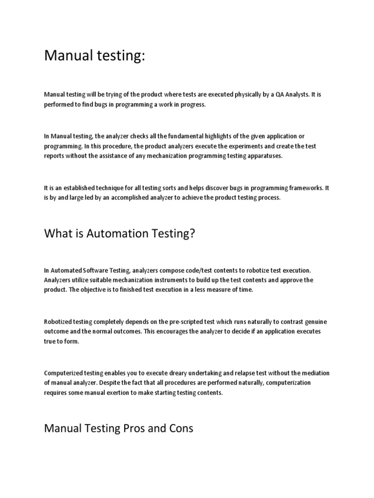 It is not the intent to publish a complete summary of the testing methods and procedures. Intentionally left blank 3132019 revised procedures page 1 of 2 testing procedures for all tests. Field sampling and testing manual. Difference between manual testing and automation testing.