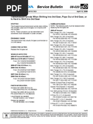Tsb Honda A08 020 Manual Transmission Transmission Mechanics