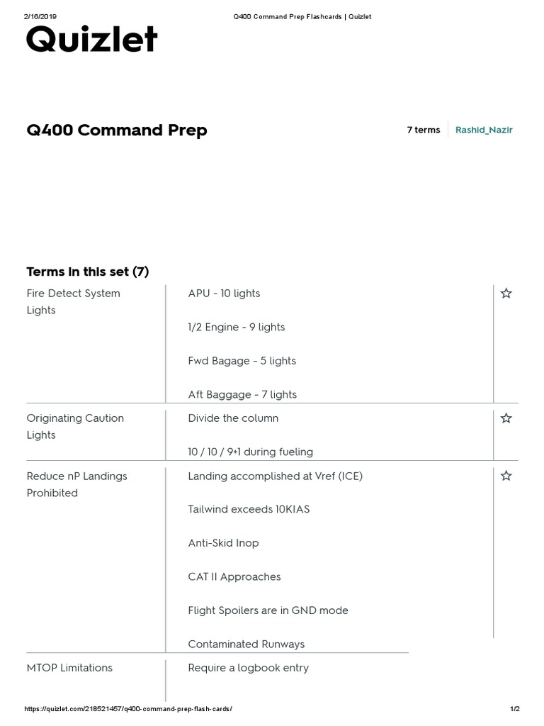 Q400 Command Prep Flashcards Quizlet Aviation Safety Vehicles