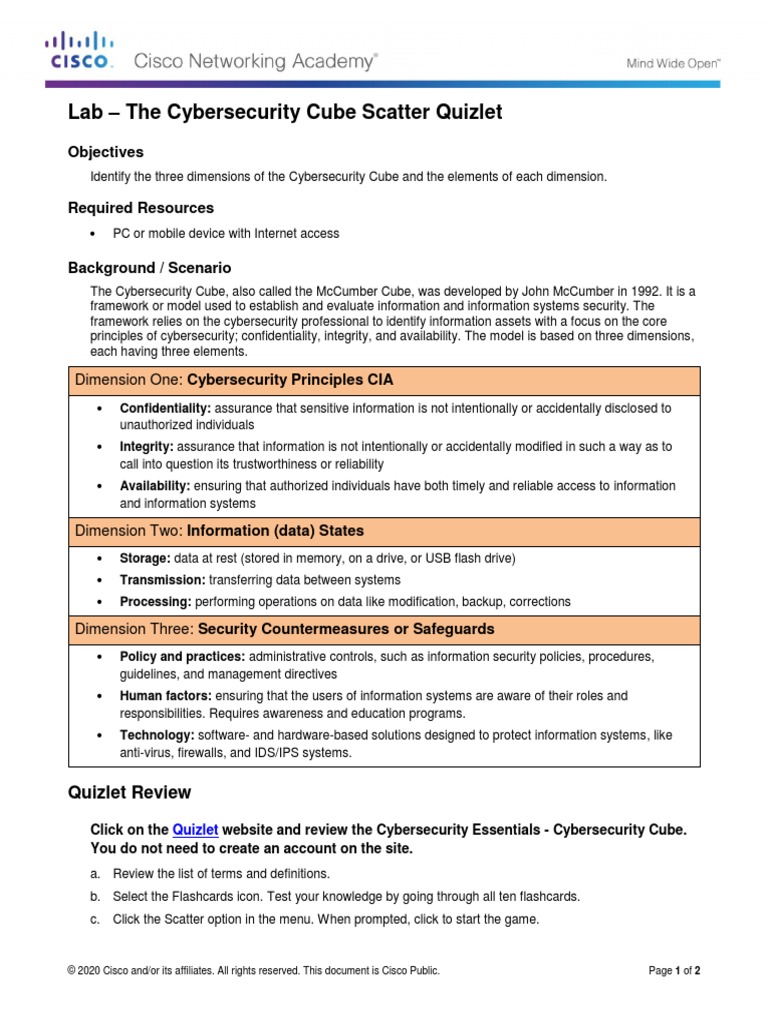 2 4 3 6 Lab The Cybersecurity Cube Scatter Quizlet Docx