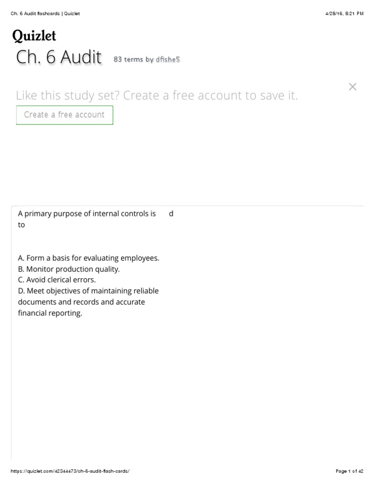 Fraud Audit Flashcards Quizlet Internal Control Financial Audit